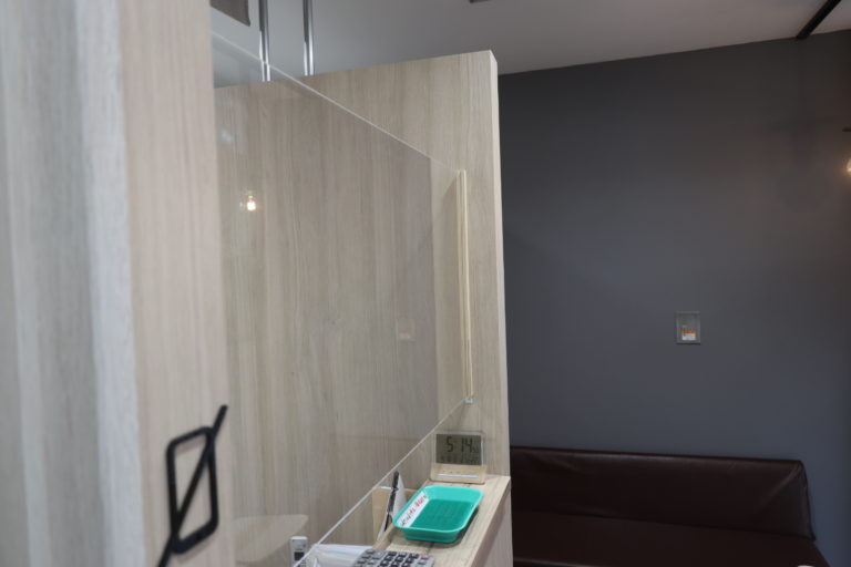 8.飛沫防止のため、受付にアクリル板を設置しています。